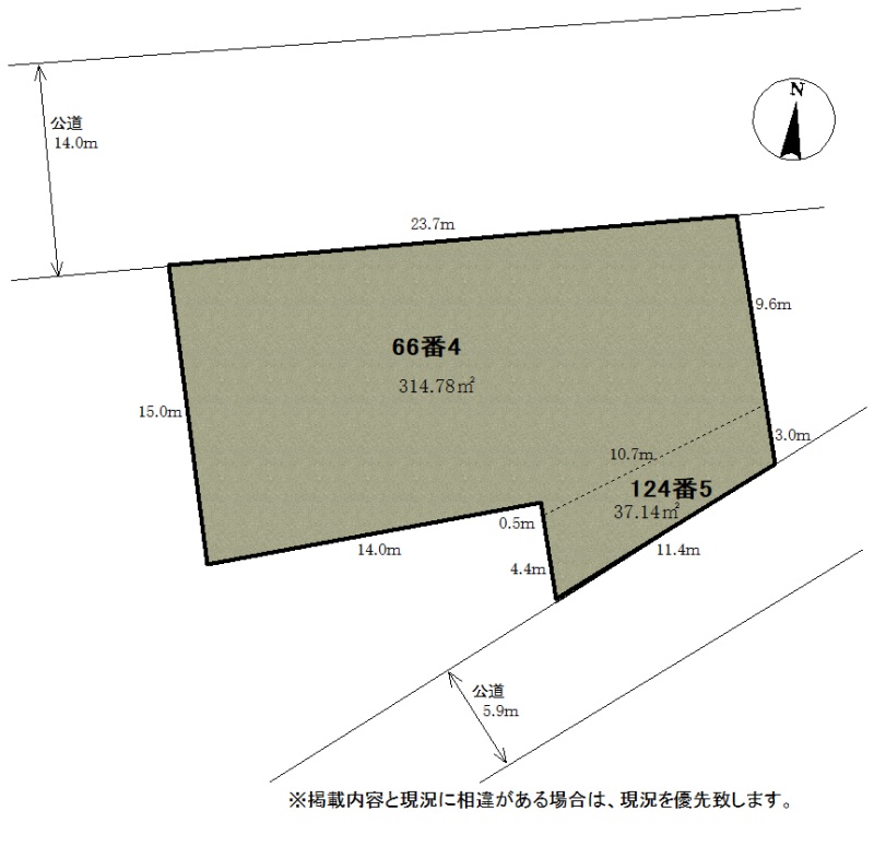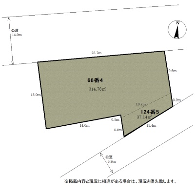 総区画数-/- 接道状況 二方(除角地) - 北側幅14.00mの公道に23.70m接道