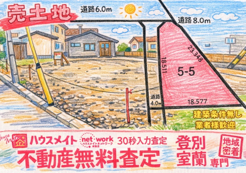 登別・室蘭で不動産の売却・相続・空き家のご相談なら、ハウスメイトネットワーク登別室蘭店(有限会社大拓建設)へ。 地域密着の経験と実績を活かし、「できるだけ良い条件で売りたい」「相続した家をどうすればいいか分からない」などのお悩みに丁寧に対応します。 無料査定(訪問・机上・LINE)で根拠ある価格をご提示し、無理な営業は一切なし。 誠実で安心の不動産サポートをお届けします。