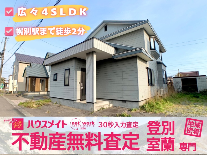 ここに注目!【お値下げしました!!】『家族の笑顔が集う、駅近4SLDKのゆとり空間。』JR幌別駅まで徒歩2分!通勤・通学に便利な好立地の一戸建てです!日当り良好な整形地で、閑静な住宅街に位置しています。登別中央ショッピングセンターアーニスやスーパー、病院、郵便局も徒歩5分圏内に揃い、日々の暮らしを快適にサポート!生活利便性の高い場所で新生活を始めませんか?各居室に収納があり、ウォークインクローゼットや物置も完備で収納力も充実☆☆IHクッキングヒーター付きのシステムキッチン、トイレ2ヶ所以上、浴室1坪以上など、水回り設備も整っています!北海道の冬も安心の灯油暖房で快適な室内環境です!この魅力的な住まいで、新しい生活を始めてみませんか?詳細はハウスメイトネットワーク登別室蘭店までお気軽にお問い合わせください!!