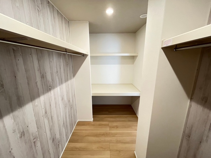 支度のしやすい広々としたウォークインクローゼットは、収納力抜群で洋服や小物をすっきり整理できる快適な空間です。
