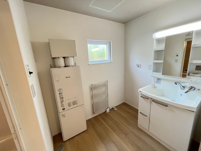 脱衣所は洗濯機置き場を備え、家事動線がスムーズ。明るく清潔感のある使いやすい空間です。