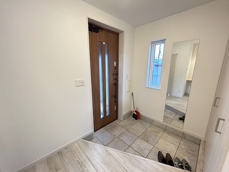 玄関は大きな窓から自然光がたっぷり入り、明るく開放的な空間で訪れる人を温かく迎えます。