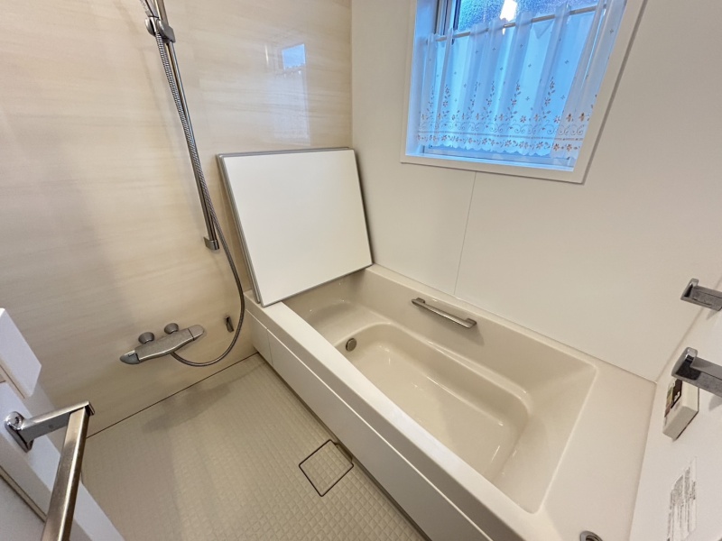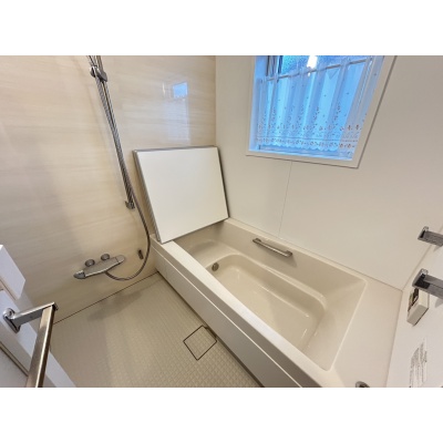 明るい浴室は、大きな窓や照明により清潔感があり、心地よくリラックスできる快適なバス空間を演出しています。