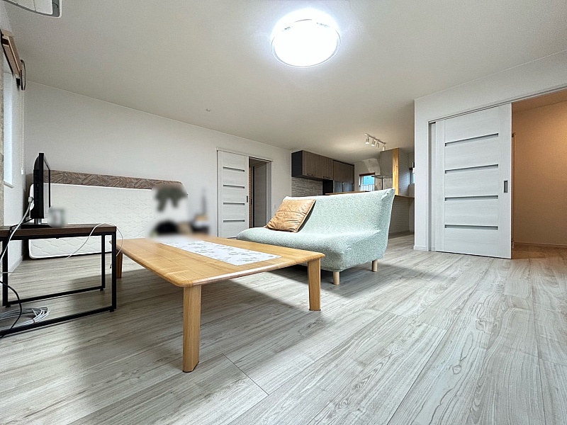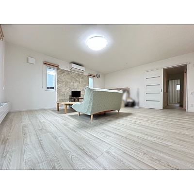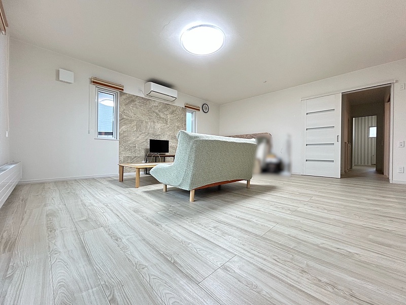 明るく開放的な空間は、自然光がたっぷり入り、広々と感じられるため、家族や来客が心地よく過ごせる雰囲気です。