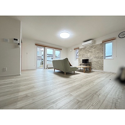 家族が十分にくつろげる23帖のリビングは、広々として開放感があり、大きな窓から自然光が差し込み明るく快適な空間です。