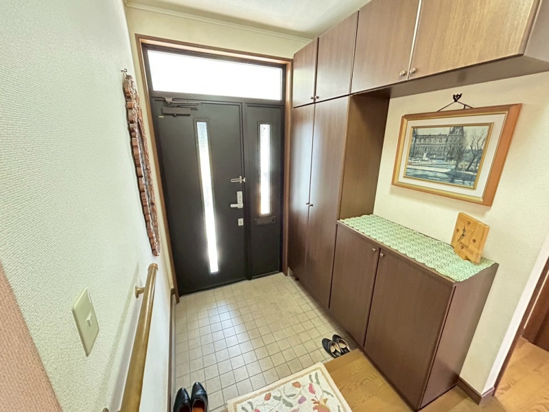 広さのあるエントランスは開放感があり、来客時にもゆったりと対応でき、住まいの印象を明るく演出します。