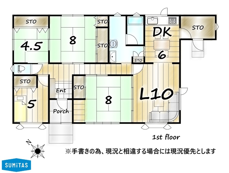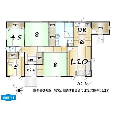 | 間取り | 4LDK1階:L10帖 DK5.7帖 和室8帖 和室8帖 和室4.5帖 洋室5帖 |