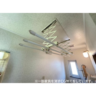 昇降機付きで、洗濯物の上げ下ろしもラクに行えます。重い洗濯物や大量の衣類もスムーズに扱える便利な設備です。