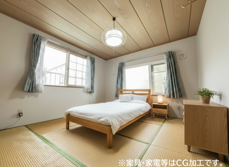 ChatGPT: 8帖の和室は、2面採光によって自然光が心地よく入り込み、明るさと風通しの良さを兼ね備えた空間です。