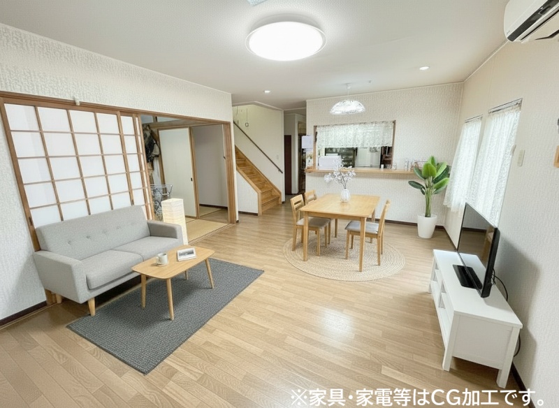 ※一部家具を消すCG加工をしています。開放感のある空間は、ご家族が集う憩いの場に最適です。
