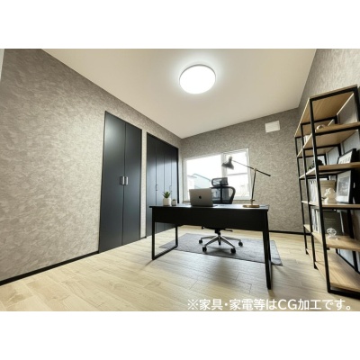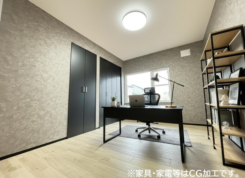 6帖の洋室は、ワークスペースとしても使いやすい広さ。デスクや収納を配置して快適に作業できる空間です。