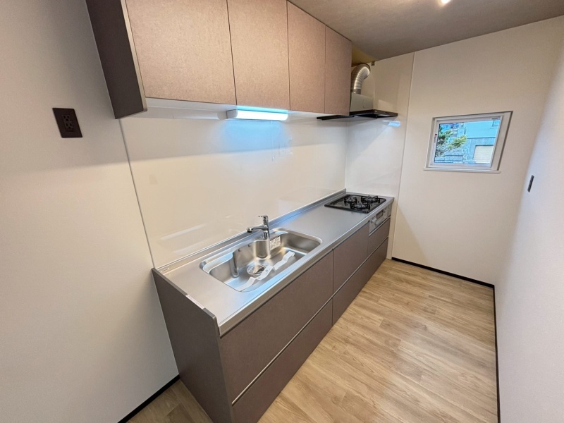 交換済みのキッチンで、使い勝手も快適。収納や作業スペースが充実しており、毎日の料理がスムーズに楽しめます。