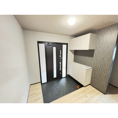 広々とした玄関には大容量のシューズボックスを完備。家族の靴や小物をすっきり収納できます。