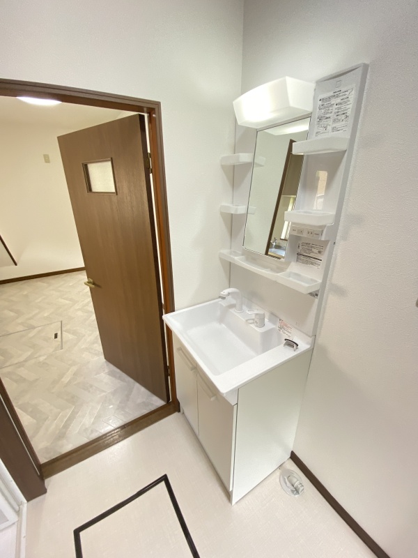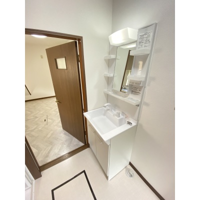 洗面化粧台も交換済みで、新品の清潔感あふれるデザイン。毎日の身支度が快適に行える嬉しいポイントです。