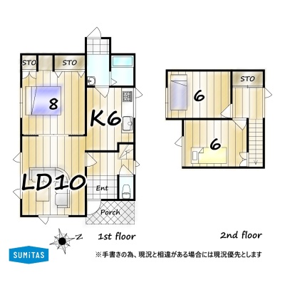 | 間取り | 3LDK1階:LDK16帖 洋室8帖 / 2階:洋室6帖 洋室6帖 |