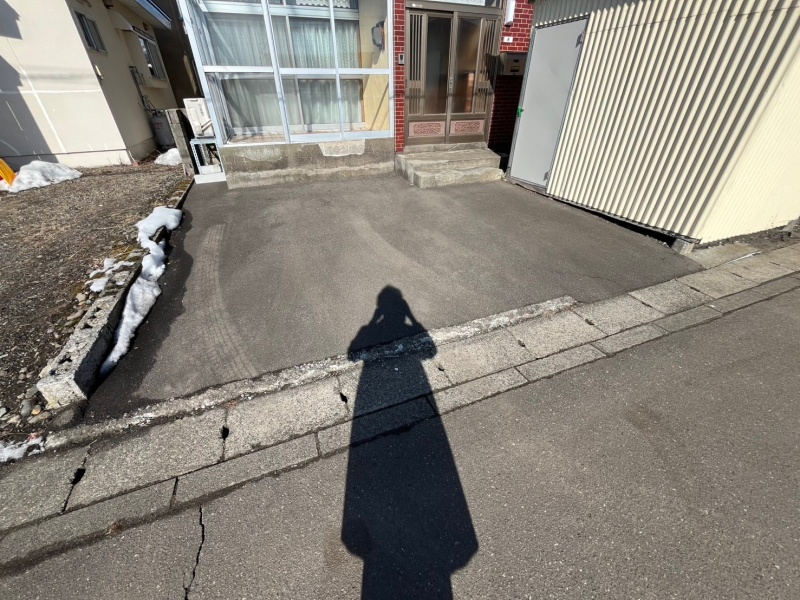 玄関前の舗装済みスペースは軽自動車の駐車が可能。来客用にも使え、日常の駐車スペースとしても便利です。