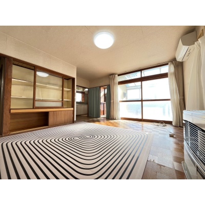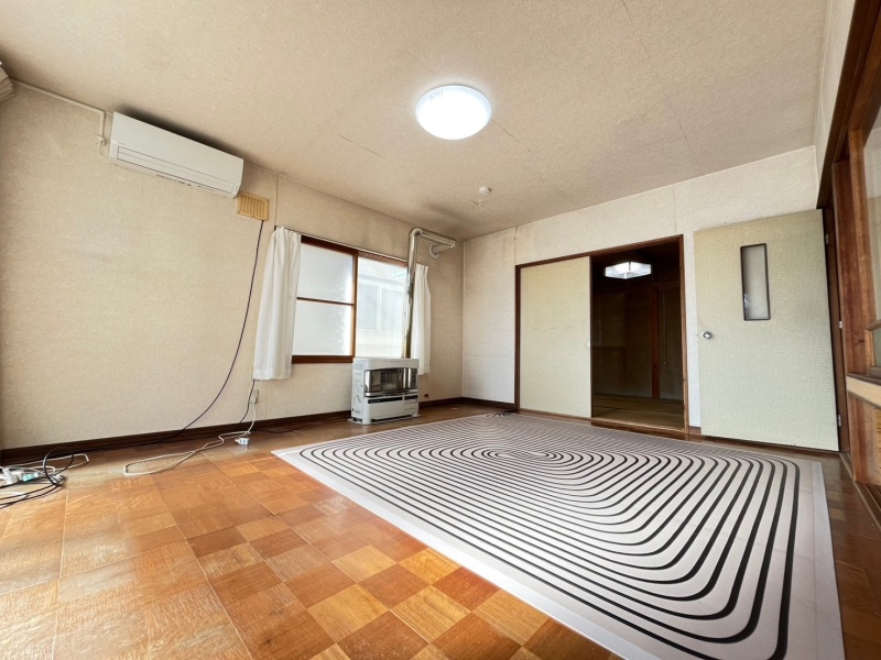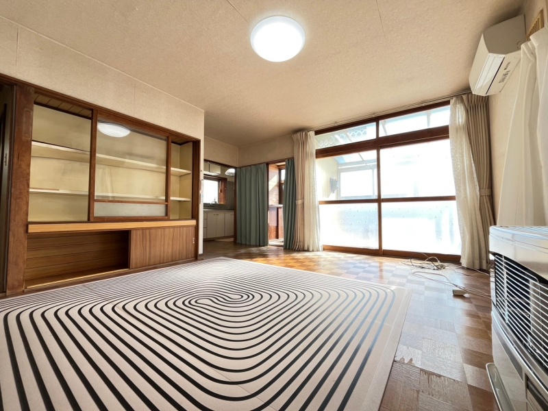 大きな窓から光が差し込む明るい室内。ストーブ完備で冬の寒さも安心です。サンルーム付きで洗濯にも便利。