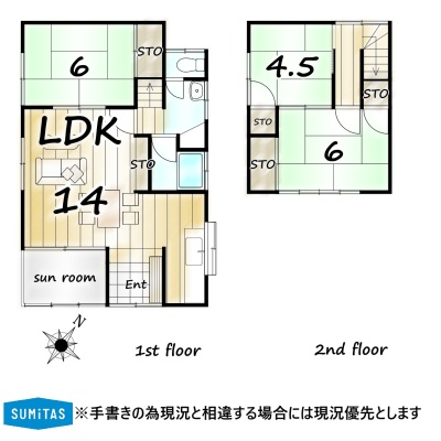 備考 ✨SUMiTASと一緒に不安のない家探しを始めませんか?✨【物件見学】■ご希望があれば近隣の資料をお持ちいたします♪■お客様にピッタリの物件をご紹介します♪【住宅ローンについて】■住宅ローン代行も承ります♪■店頭で住宅ローンのご相談、資金計画、お申込みが可能です♪【中古×リフォーム】■弊社の隣はリフォーム専門業者様です♪■中古物件購入+リフォーム費用もまとめてご相談!お家のことならお任せください! 学区色がついているアイコンをクリックすると、本物件までの道順を見ることができます。