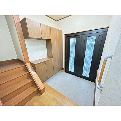シューズボックス完備の広い玄関は、家族分の靴をすっきり収納でき、いつでも整った印象に。