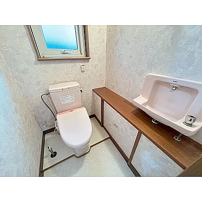 手洗い付きのトイレは、動線が短く衛生的に使える便利な仕様。来客時にも使いやすく、清潔感のある快適な空間を保てます。