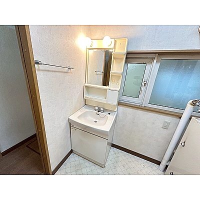 収納力のある洗面化粧台で、日用品をすっきり整理。毎日の身支度がスムーズにこなせる使い勝手の良い設備です。