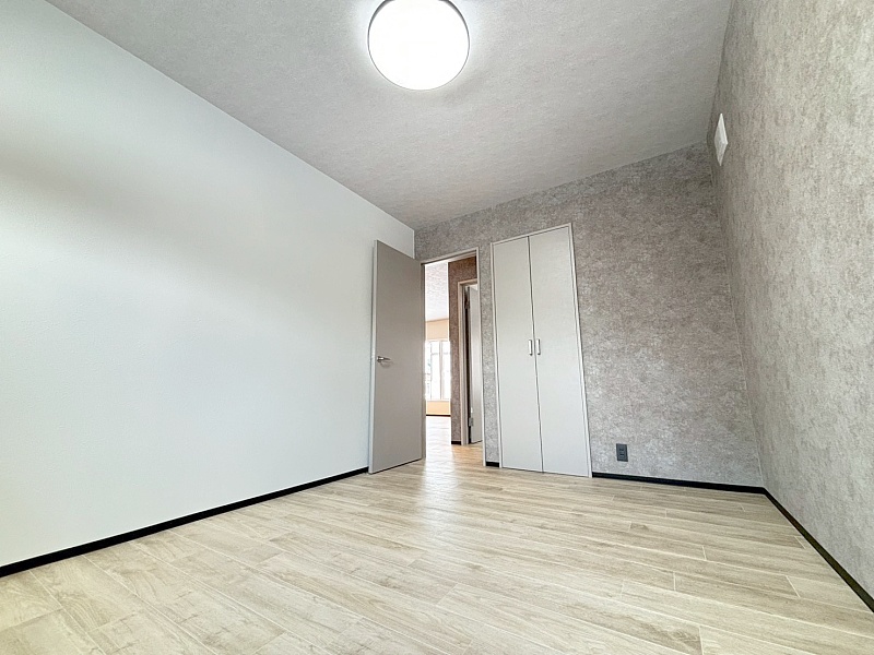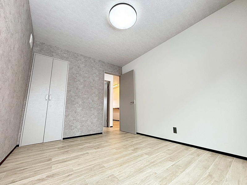6帖の洋室は、寝室や子ども部屋として使いやすい広さ。ベッドや収納家具を置いてもゆとりがあり、快適に過ごせる空間です。