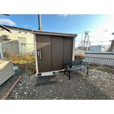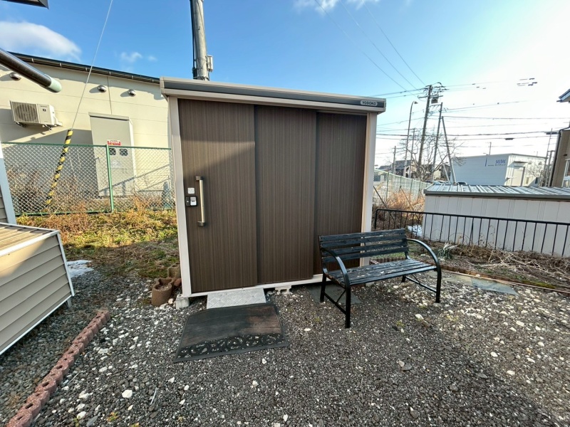 屋外には便利な物置を設置。季節用品やタイヤ、アウトドア用品などをすっきり収納でき、住空間を広く使える嬉しい設備です。