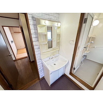 洗面化粧台は収納付きで、タオルや洗面用品をすっきり整理可能。使い勝手の良い設計で、朝の身支度も快適に行えます。