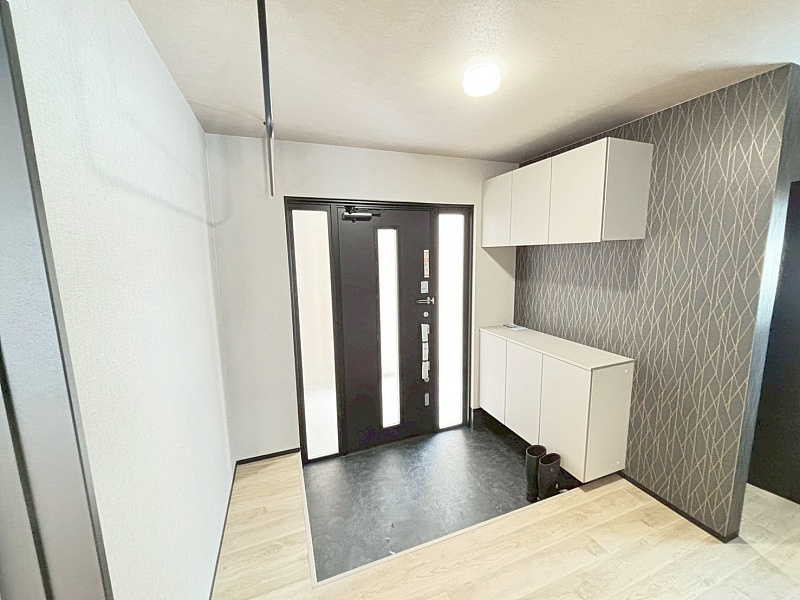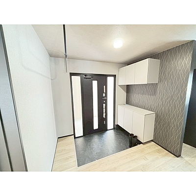 広々とした玄関には、大容量のシューズボックスを完備。ハンガーバー付きで、コートや雨具の収納にも便利です。