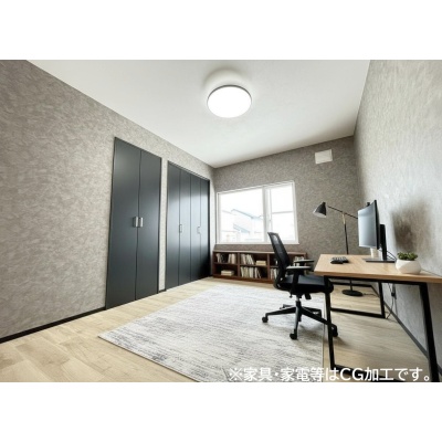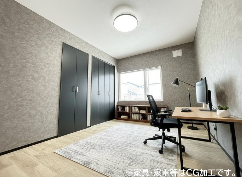 6帖の洋室は、ワークスペースとしても使いやすい広さ。デスクや収納を配置して快適に作業できる空間です。