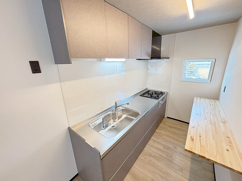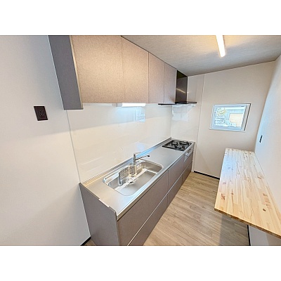 交換済みのキッチンで、使い勝手も快適。収納や作業スペースが充実しており、毎日の料理がスムーズに楽しめます。