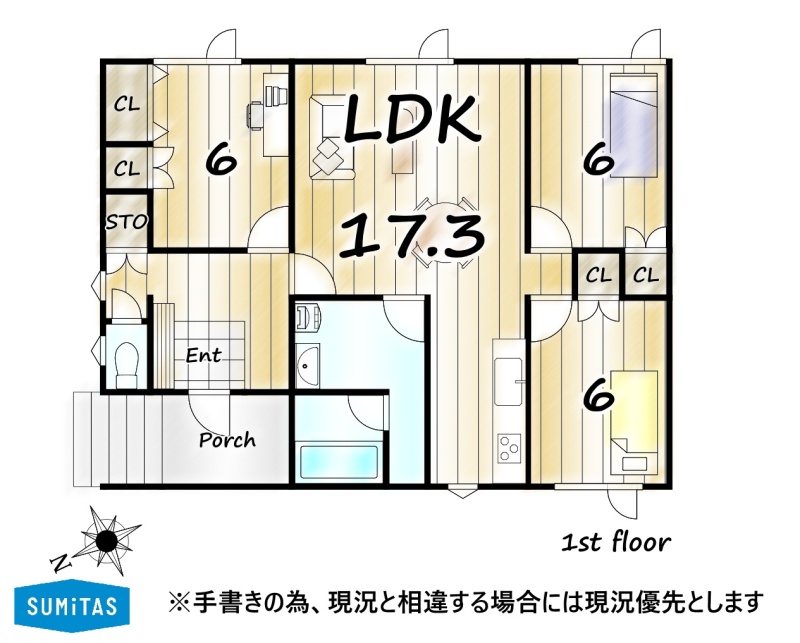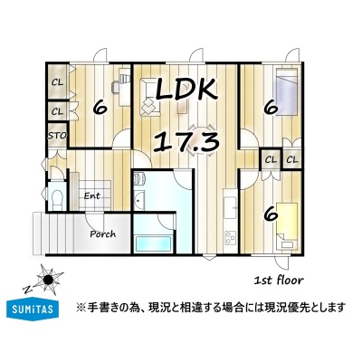 | 間取り | 3LDK1階:LDK17.3帖 洋室6帖 洋室6帖 洋室6帖 |