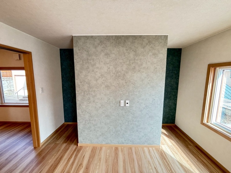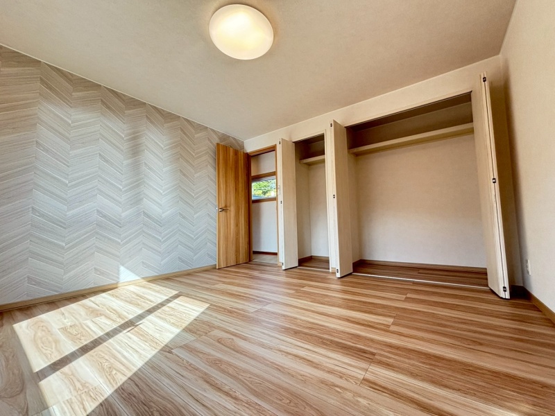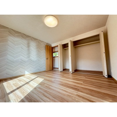 2階の洋室はアクセントクロスを施し、落ち着きと個性を感じられるおしゃれな空間です。