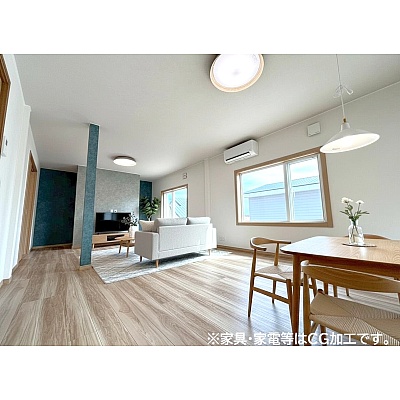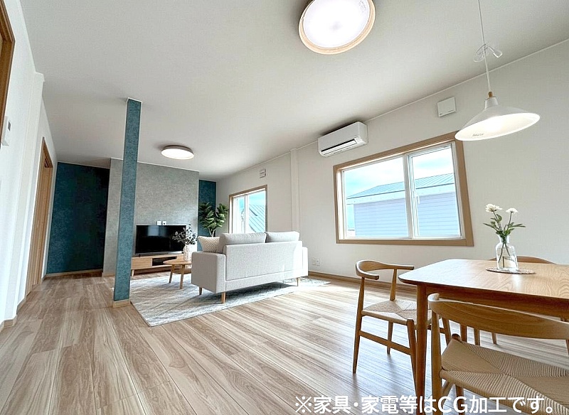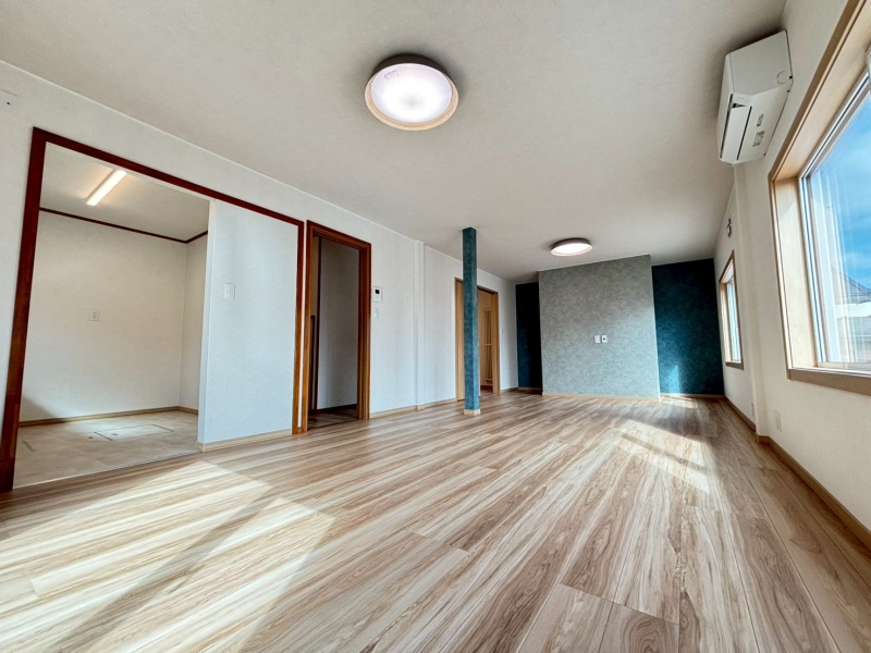 広々としたダイニングスペースは家族団らんにぴったりで、南向きの窓から明るい光が差し込みます。
