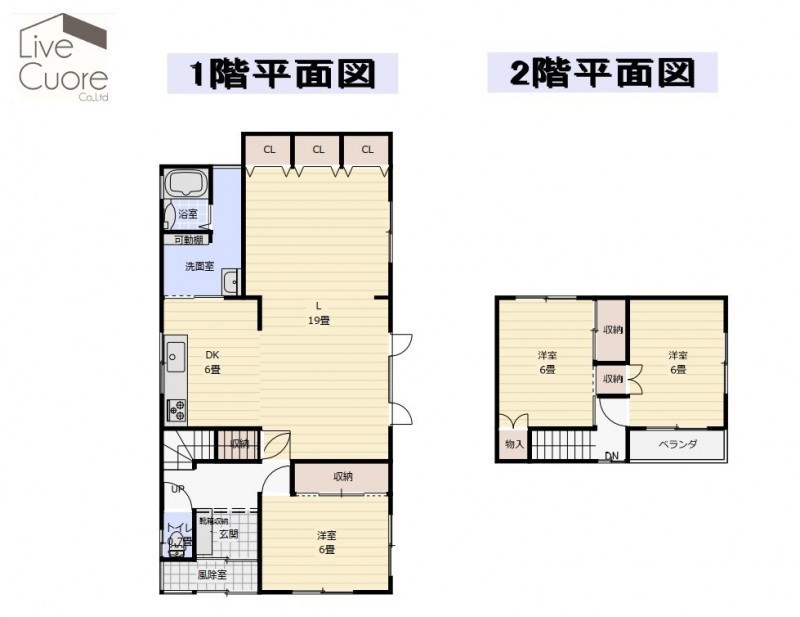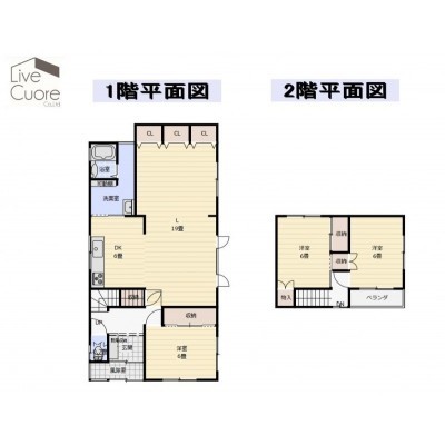 | 間取り | 3LDK1階:L19帖 DK6帖 洋室6帖 / 2階:洋室6帖 洋室6帖 |