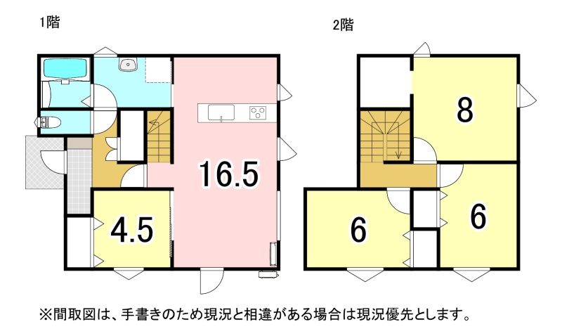 | 間取り | 4LDK1階:LDK16.5帖 洋室4.5帖 / 2階:洋室8帖 洋室6帖 洋室6帖 |