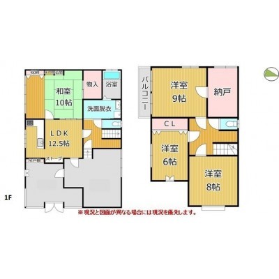 | 間取り | 4SLDK1階:LDK12.5帖 和室10帖 その他 / 2階:洋室9帖 洋室8帖 洋室6帖 |