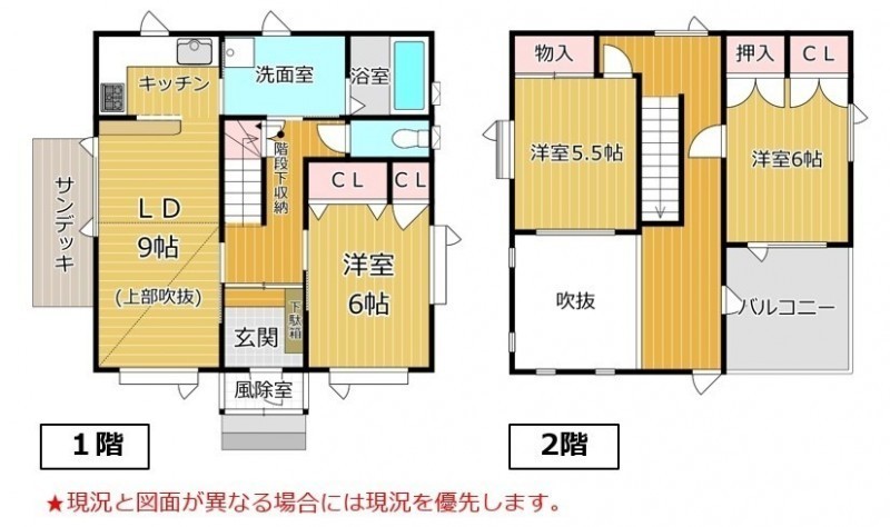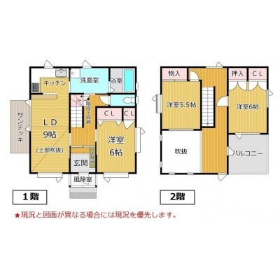 | 間取り | 3LDK1階:LD9帖 K 洋室6帖 / 2階:洋室5.5帖 洋室6帖 |