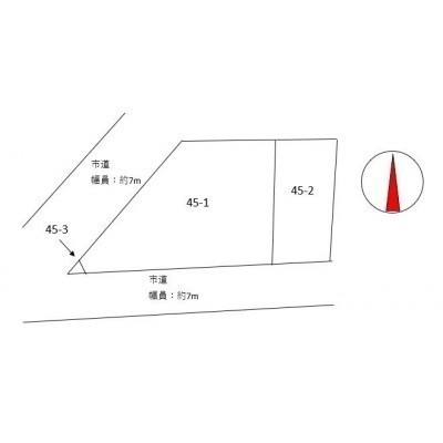 備考 ※現状渡し(売主契約不適合責任免責) 45番3 地目:宅地 現況:公衆用道路(約2.86㎡) 45番1 の南西部に電柱及び支柱(北電)、反射鏡。(詳細はお問い合わせください) 学区色がついているアイコンをクリックすると、本物件までの道順を見ることができます。