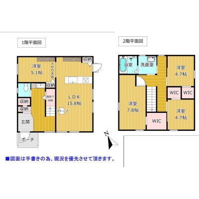 | 間取り | 4LDK1階:LDK15.8帖 / 2階:洋室7.8帖 洋室4.7帖 洋室4.7帖 / その他:洋室5.1帖 |