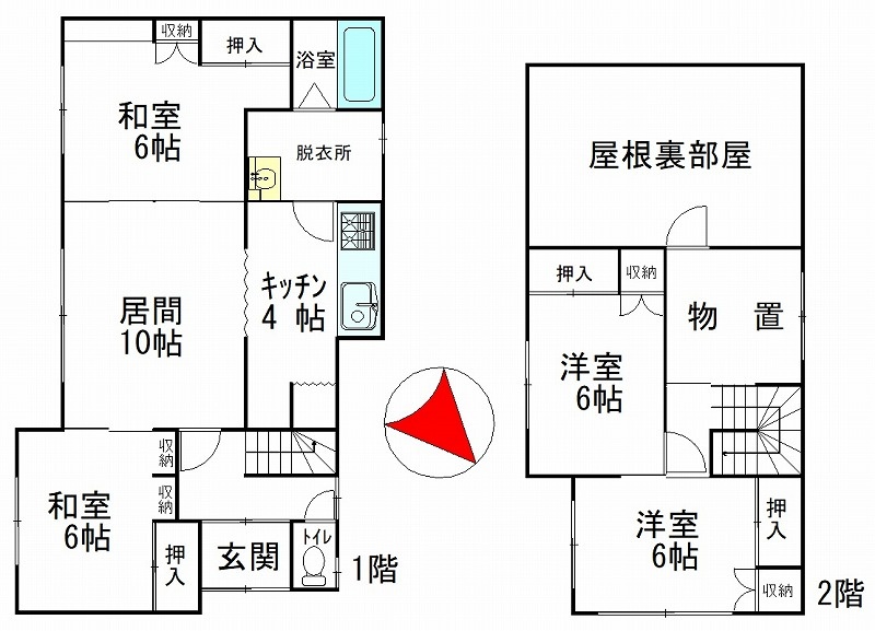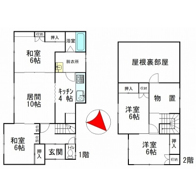 | 間取り | 4LDK1階:LDK14帖 和室6帖 洋室6帖 / 2階:洋室6帖 洋室6帖 |