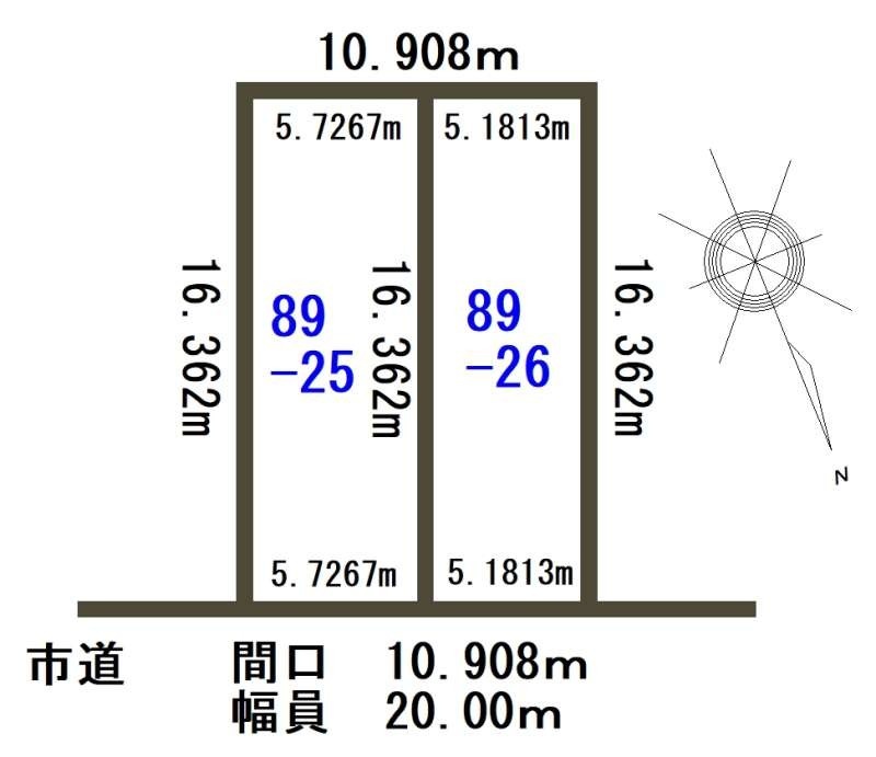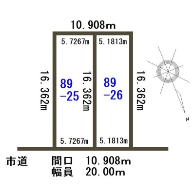 総区画数-/- 接道状況 一方 - 北東側幅20.00mの公道に10.90m接道
