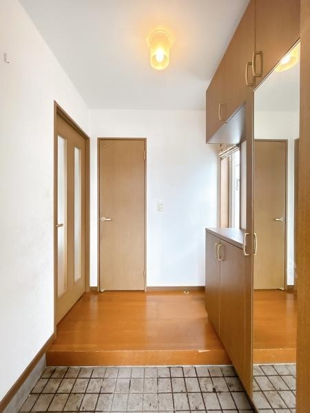 【現況】玄関内部の写真です。クローゼットがあります。玄関ドア