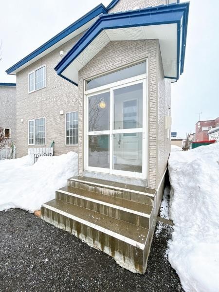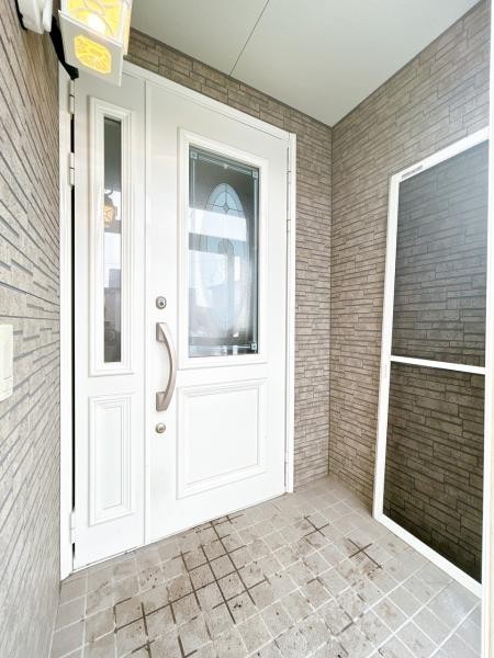 【現況】玄関外観の写真です。風除室があるので、寒さからお家を