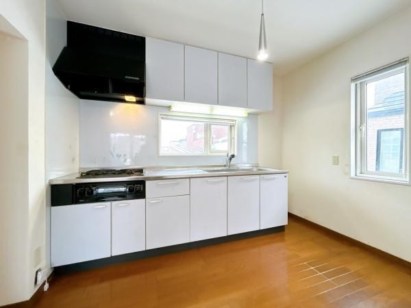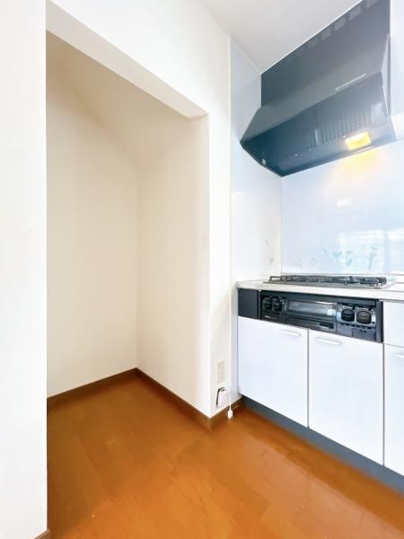 【現況】キッチンの写真です。背面にスペースも確保されているの