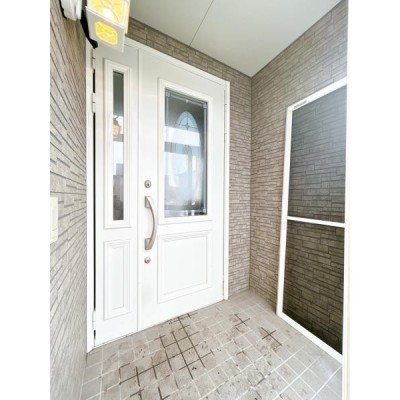 【現況】玄関外観の写真です。カギを交換してお引き渡しいたしま
