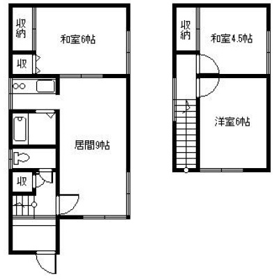 建物の階建 地上2階建 構造 木造 間取り 3DK1階:LK9帖 和室6帖 / 2階:洋室6帖 和室4.5帖 駐車場 なし接道状況 一方 都市計画区域 市街化区域 用途地域 - 準工業地域(建ぺい率:60% / 容積率:200%)