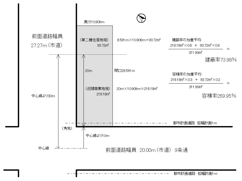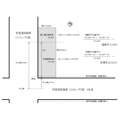 - 南西側幅20.00mの公道に10.90m接道