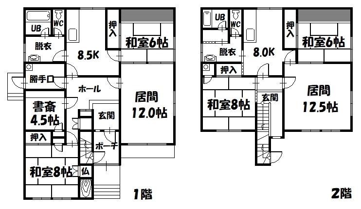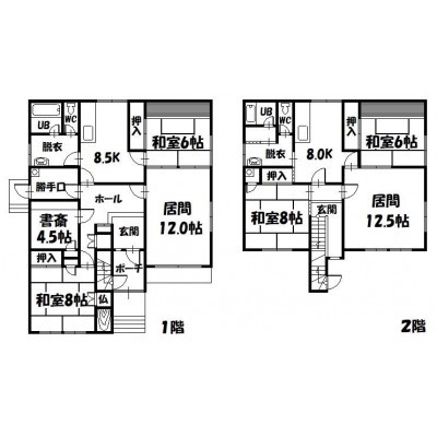 | 間取り | 2SLDKK8.500×和室6.000×和室8.000×S4.500×LD12.000 |