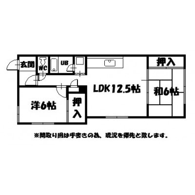2LDK(52.97m²)└ LDK12.500×和室6.000×洋室6.000
